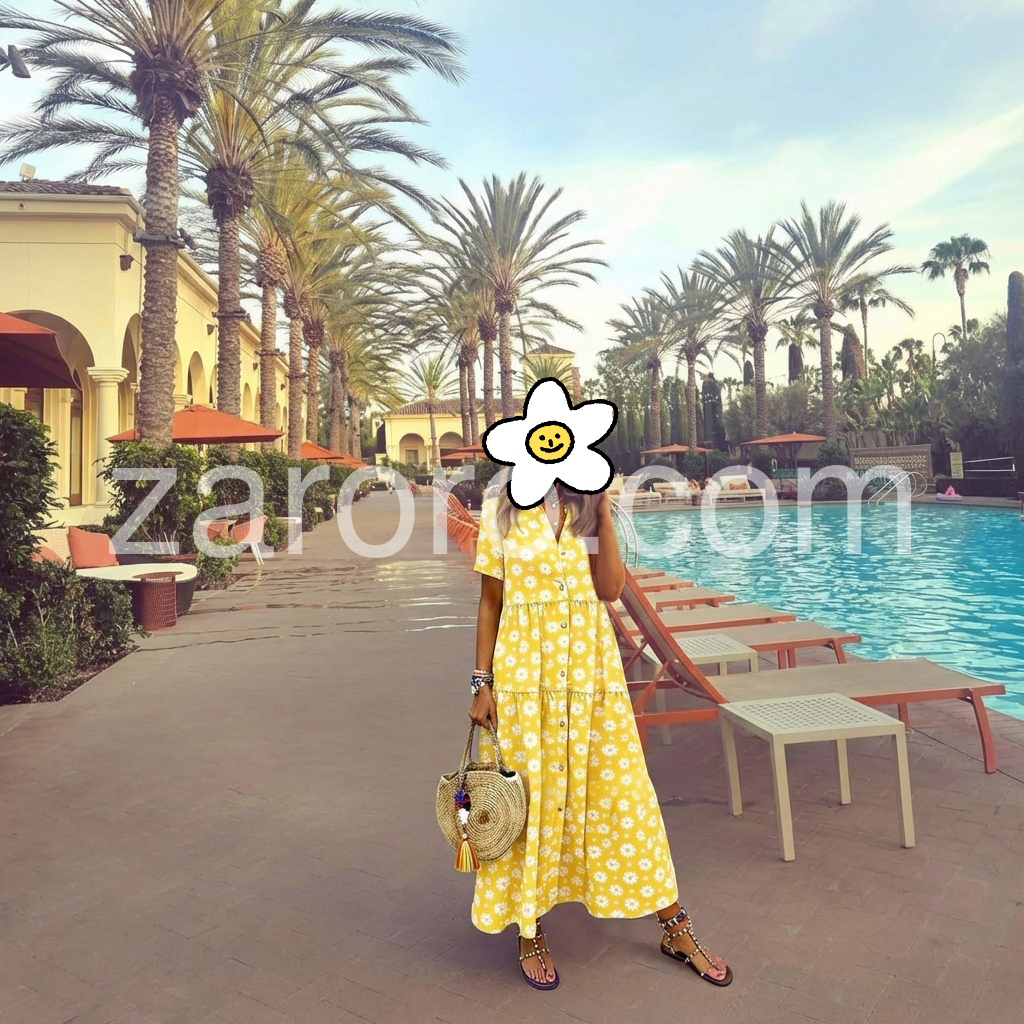 Designed to fix the "dull summer maxi" pain point, this dress is adorned with cheerful daisy prints that instantly boost your mood. The tiered skirt skims over curves, while the button-front design lets you adjust the coverage.