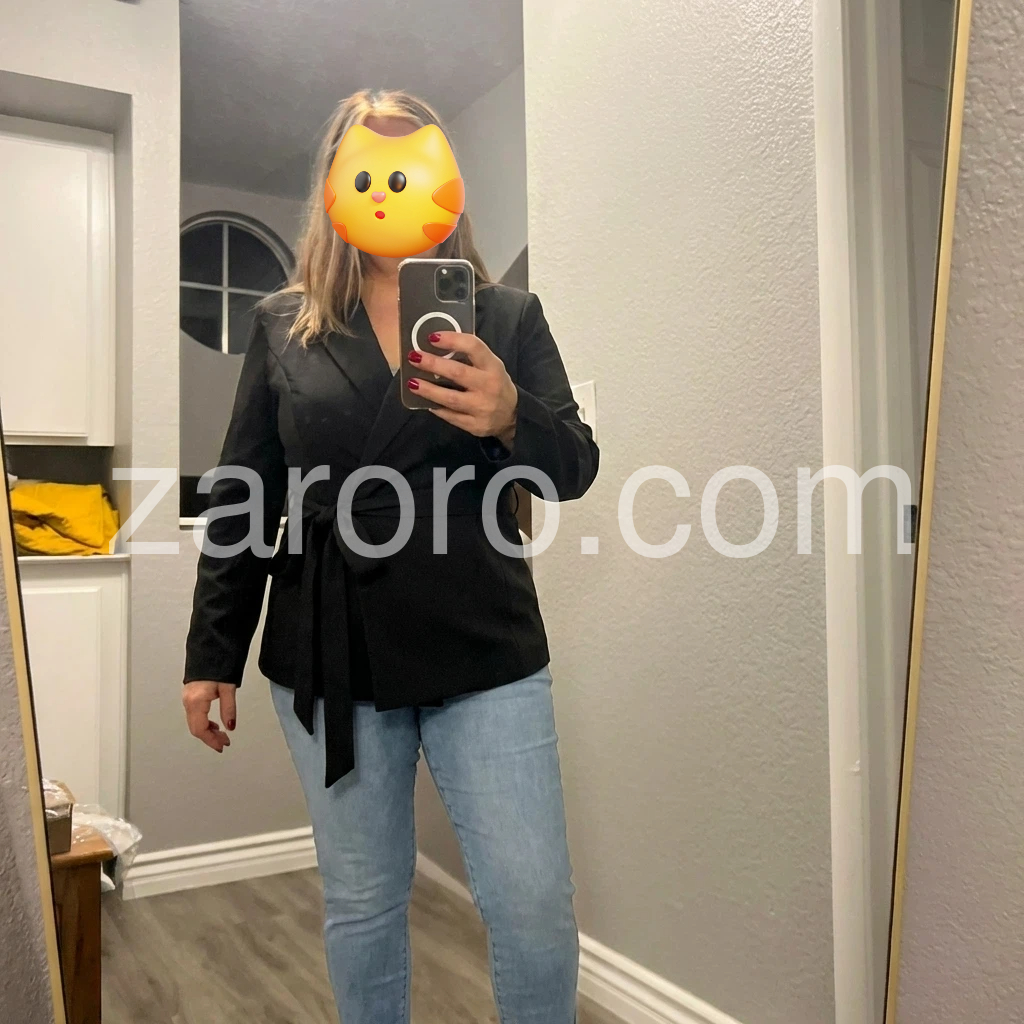 This black wrap blazer is absolutely stunning! The tailored fit with the side tie accentuates my waist perfectly, making it look so flattering and feminine. The fabric is smooth and structured, not too thick, so it’s great for transitioning between seasons. The notched lapel adds a classic touch, and the long sleeves can be pushed up for a more casual vibe. I’ve worn it to work meetings and brunch dates, and it always makes me feel polished and confident.