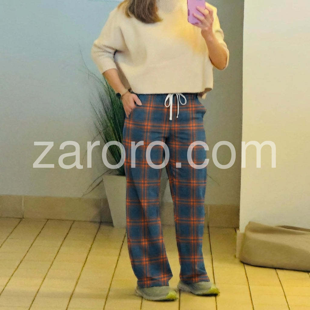 Casual Blue Check Side Pocket Pants
