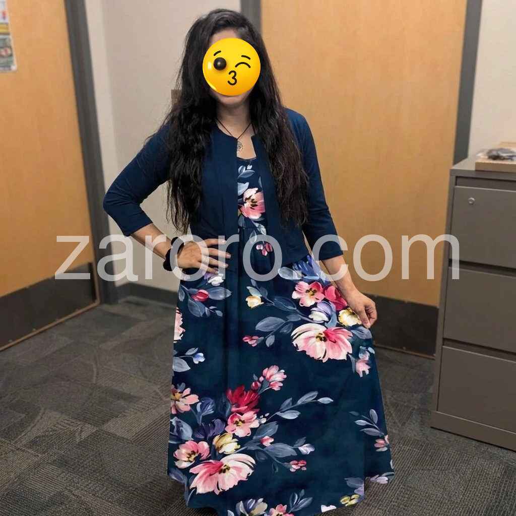 Blue Print Midi Dress With Jacket