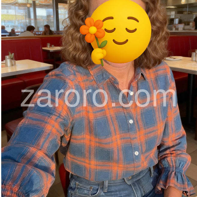 This blue check button-down shirt features elegant ruffle cuff sleeves, blending classic style with a modern twist. Crafted for a refined look, it offers a tailored fit that enhances your silhouette while providing comfort throughout the day. Ideal for professional settings or casual wear, this shirt adds a subtle yet distinctive detail that elevates any outfit.