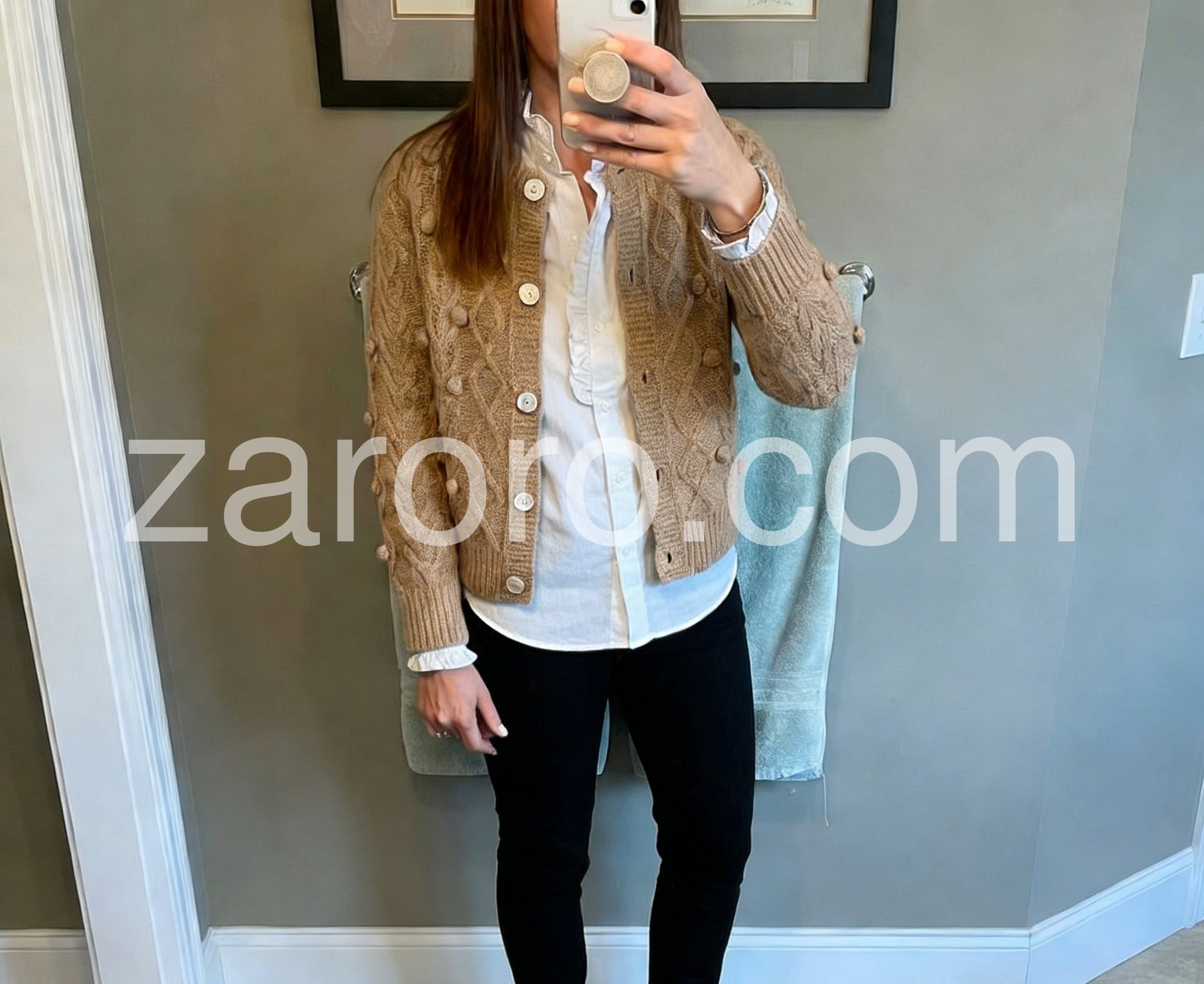This cable-knit cardigan is the coziest fall piece I’ve added to my wardrobe! The fuzzy, warm fabric feels like a hug, and the pom-pom details add such a charming, vintage touch. The button-front design make it easy to layer over blouses or tees. I paired it with jeans and a collared shirt, and it instantly elevated my look. It’s thick enough for chilly days but not bulky—perfect for weekend walks or coffee dates!