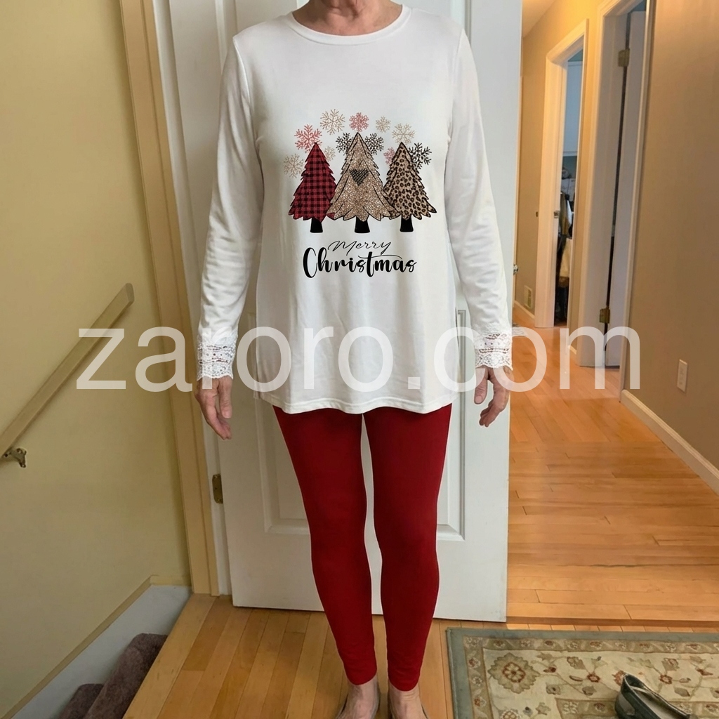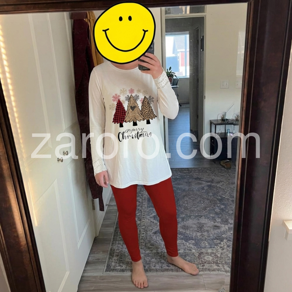 This set was so cute and fit me perfectly! Nice and soft and well made. I will wear it for the coming Christmas themed PJ party. It was long enough to cover my back side and frontside. I’m sure I will wear them for many Christmas if I’m still around. Would also be cute with black jeans. Highly recommend! Thanks for a nice set that suited my needs perfectly! I’m 5’1” tall and weigh 185 lbs. Got the XL and it was perfect!
