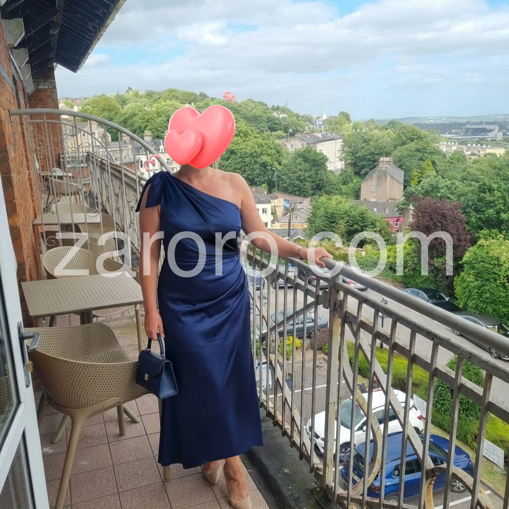 This dress is really pretty and flattering. It’s a beautiful maxi dress with a flowy, elegant vibe. The one-shoulder design adds a stylish touch, and the fabric is soft, lightweight, and slightly stretchy, making it comfortable to wear.