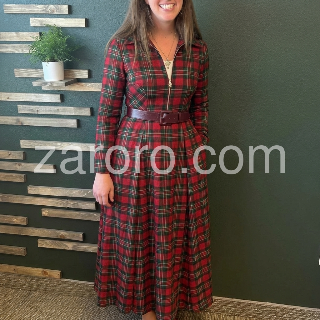 Elevate your wardrobe with this striking red plaid maxi dress, designed for those who appreciate timeless style with contemporary flair. The full-length silhouette offers sophisticated coverage, while the zip front closure provides effortless dressing and versatile styling options. Long sleeves deliver warmth and elegance, making this piece ideal for layering or wearing solo across seasons. The classic plaid pattern adds visual interest and pairs seamlessly with boots, sneakers, or heels depending on the occasion. Perfect for casual outings, professional settings, or weekend gatherings, this dress combines comfort with refined aesthetics for a polished everyday look.
