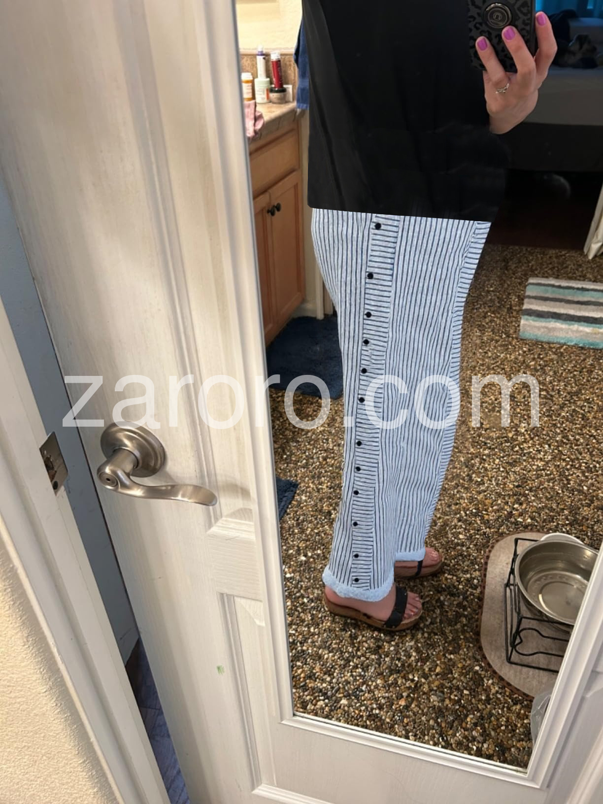 Effortless elegance meets everyday practicality in these striped blue pants that transition seamlessly from casual weekends to polished weekday moments. The elastic waistband hugs your silhouette with gentle comfort, while the luxurious rayon-elastane blend—55% rayon, 45% elastane—drapes beautifully and moves with you. Functional side pockets keep your essentials within reach without compromising the sleek silhouette. Whether you're running errands or meeting friends for brunch, these versatile pants deliver that coveted "put-together" feeling with zero effort. Machine washable for easy care, they're the wardrobe staple you'll reach for again and again.