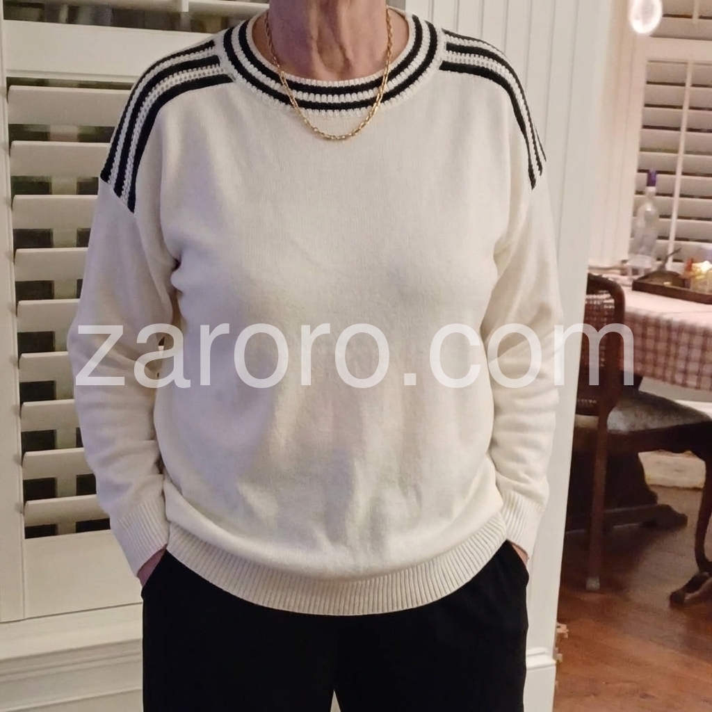 Ivory Color Block Round Neck Sweater