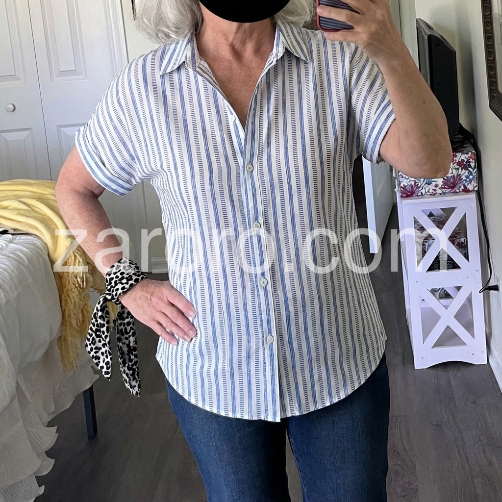 This blue and white striped shirt is a wardrobe staple! The classic print is timeless, and the oversized fit is so on-trend.