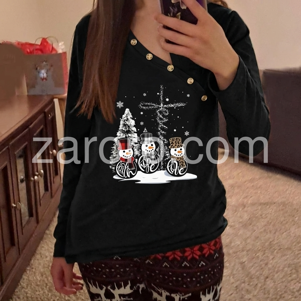 Three Snowmen Cross Asymmetrical Long Sleeve Top