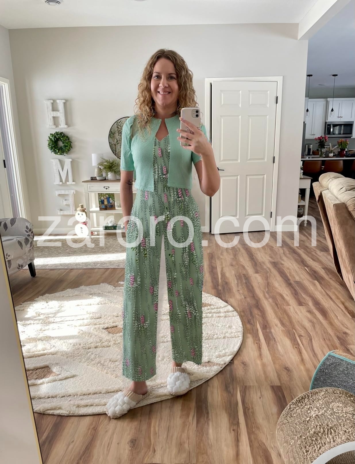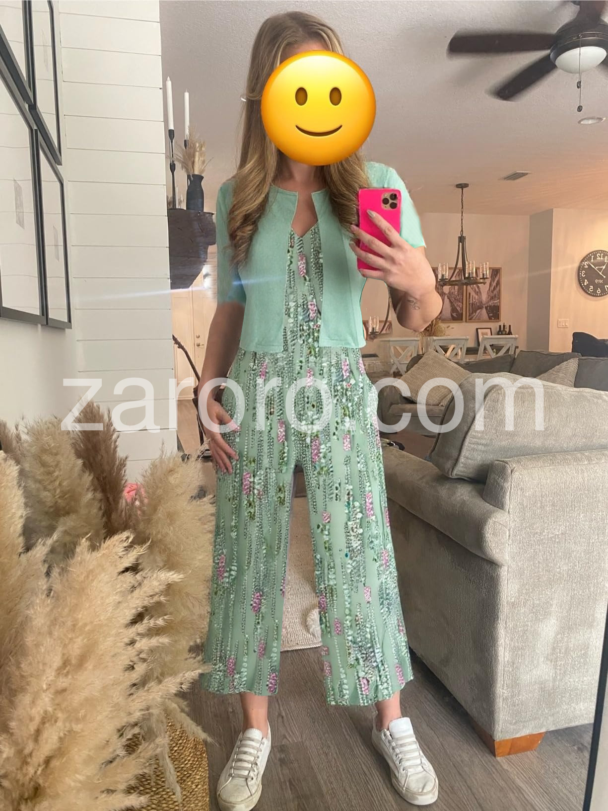 Youthful V-Neck Green Jumpsuit With Jacket