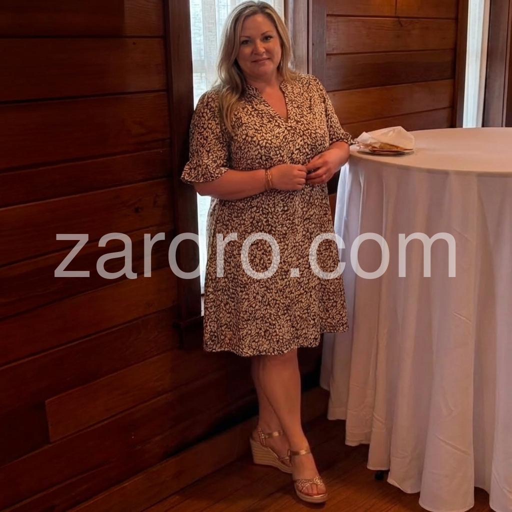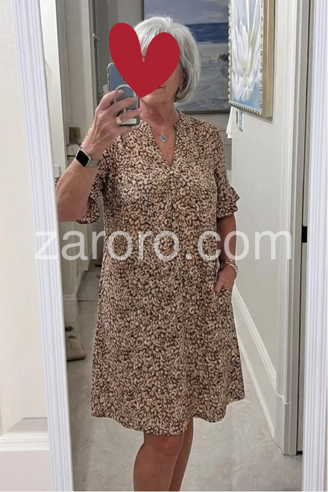 This dress is incredibly comfortable and lightweight. The earthy print is beautiful and I love the little ruffle detail on the sleeves. Perfect for warm summer days.