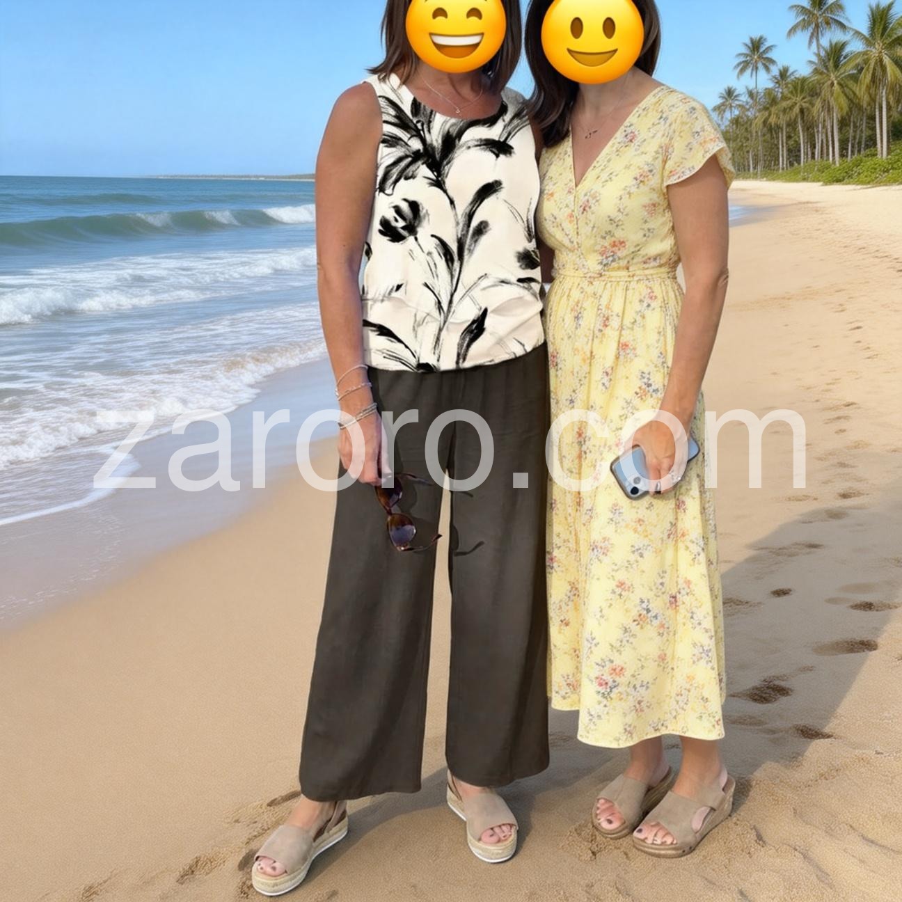 This two piece set can be dressed up or dressed down. It's lightweight, comfy, breathable & fashionable. I found the size to be appropriate as I ordered my size & it fit perfectly.