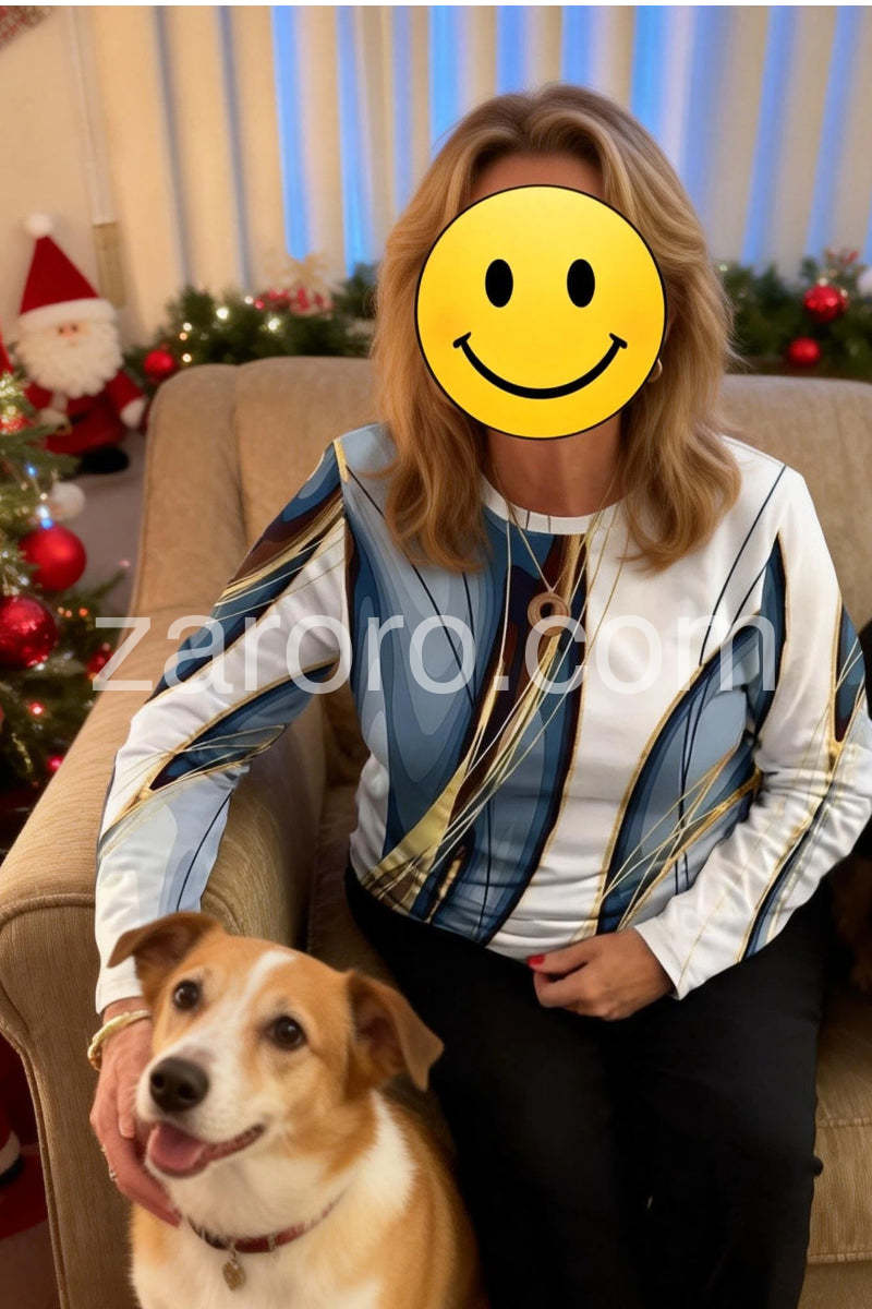 Elevate your wardrobe with this Stunning Geometric Print Round Neck Long Sleeve Top. Designed with a modern geometric pattern, it offers a sophisticated look suitable for both professional and casual settings. The round neck and long sleeves provide comfortable coverage, making it ideal for layering or wearing alone. Crafted to combine style and practicality, this top enhances your outfit with a contemporary edge while ensuring all-day comfort.