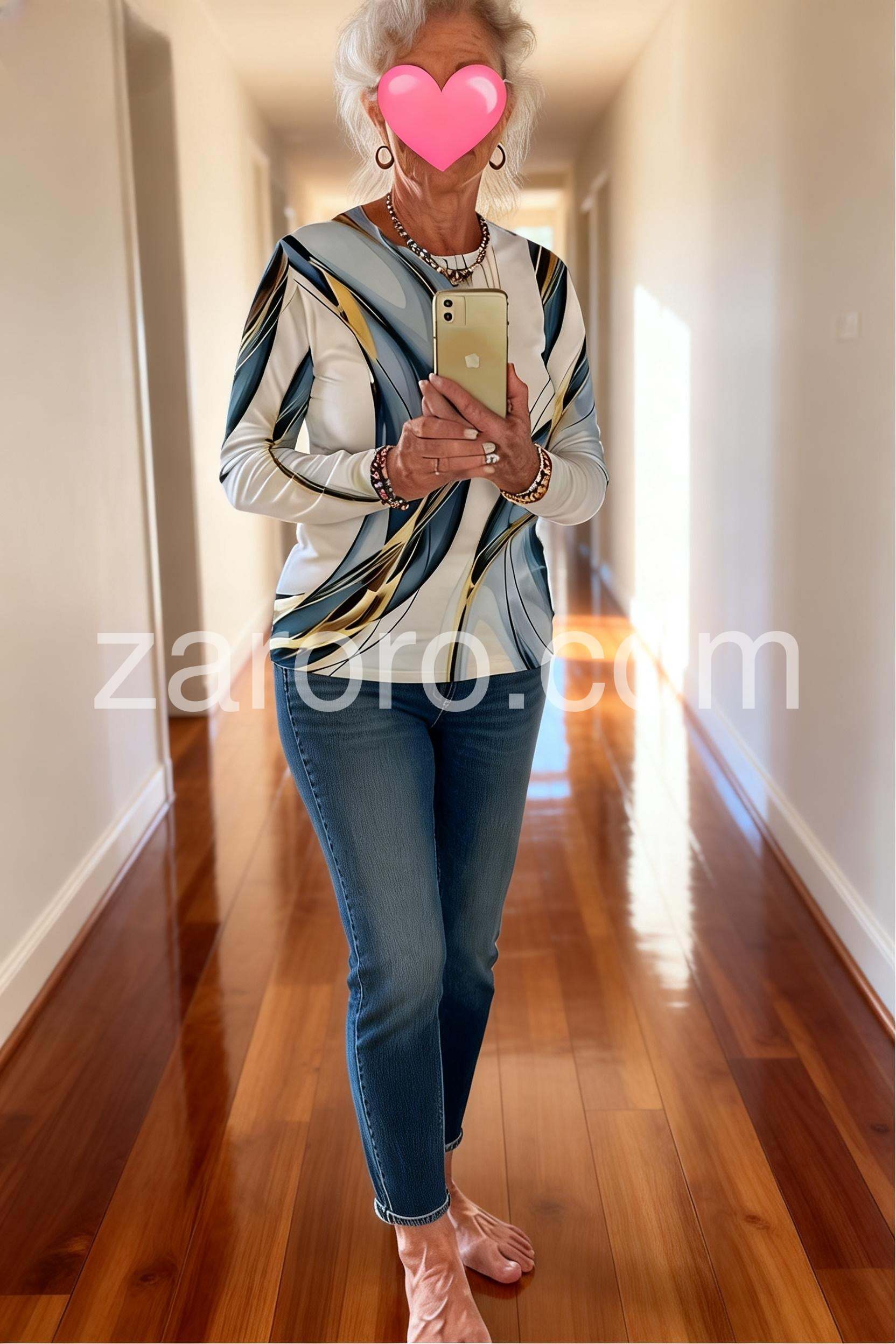 Stunning Geometric Print Round Neck Long Sleeve Top