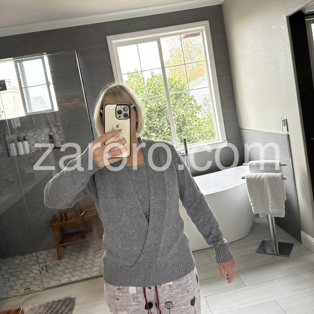 Gray V-Neck Twofer Long Sleeve Sweater