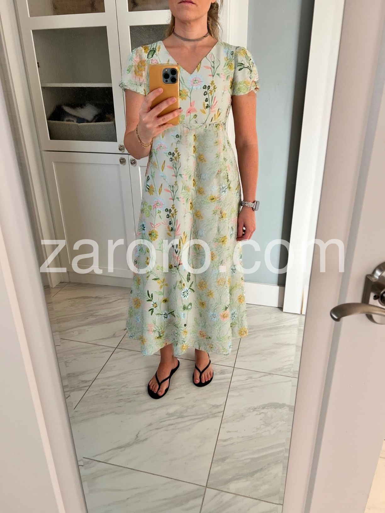 Distinctive V-Neck Short Sleeve Maxi Dress