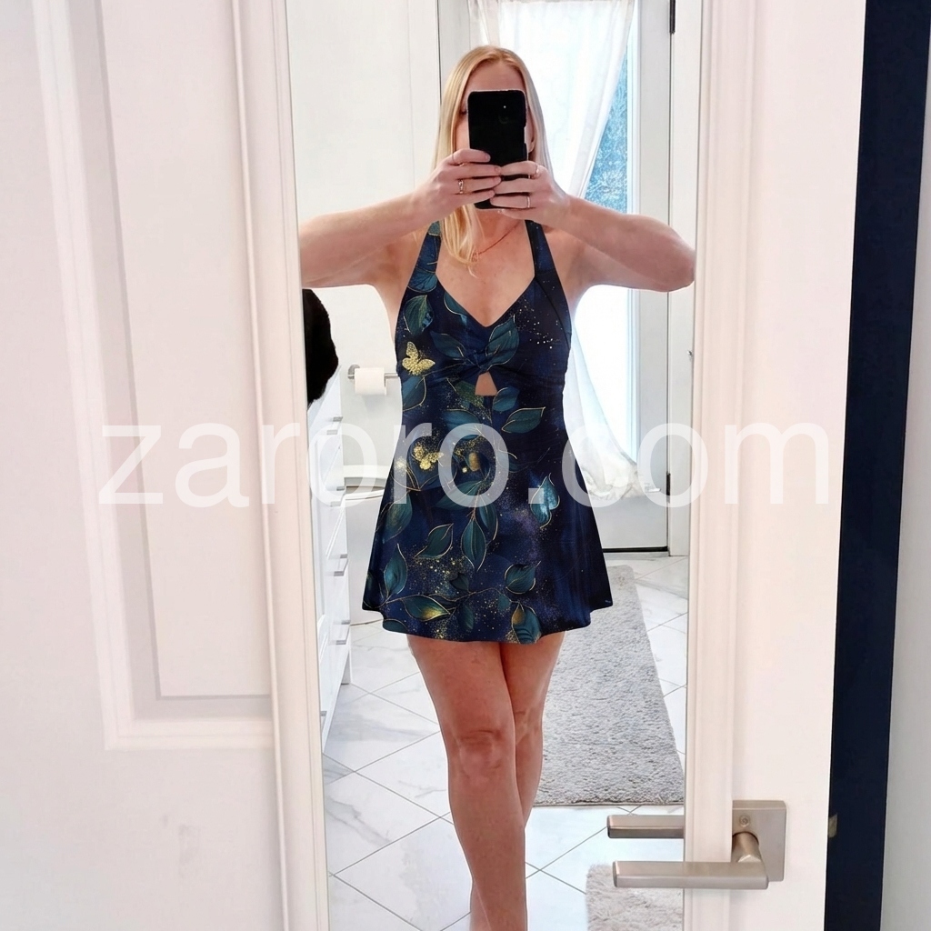 Really pretty swimsuit. Comfortable. Nice coverage. I Love it. It fits just as it should. The color was great, the tummy control was just enough without cutting you in two . Looks really good on and covers the rear end just enough.