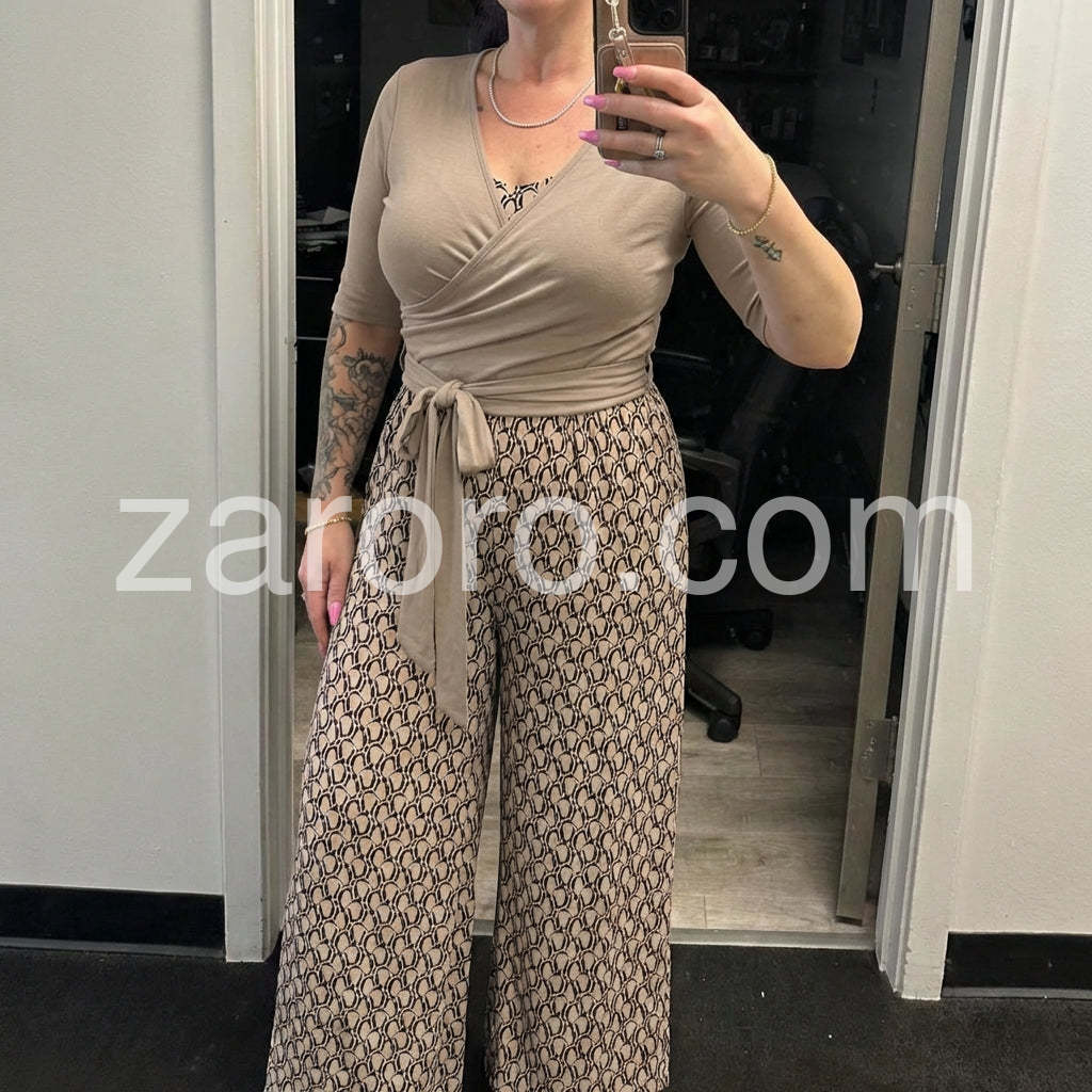 Received so many compliments when I wore this! The color combination of the taupe top and the patterned bottoms is sophisticated and trendy. Will be buying more colors if available.